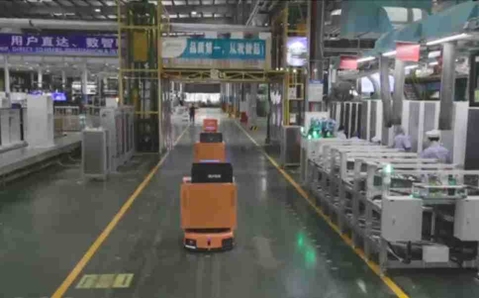 为车载冰箱物流配送打造的智能解决方案,,,,包含产中物流通过潜伏举升AMR搬运至线边,,,,产后成品物流智能仓储,,,流程包含产中物流智能齐套入库,,线边安灯叫料AMR智能配送至线边,,,成品入库、、出库,,,,通过无人堆高车机器人,,,,智能仓储管理替代人工作业管理,,,实现更高存储、、更高效率、、、、更具柔性化的解决方案。。。。